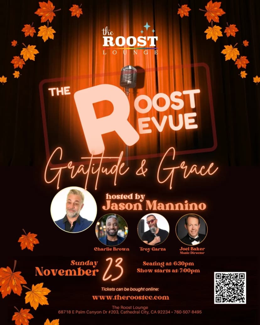 The Roost Revue offers a special, heartwarming edition of its bold cabaret series just in time for the Thanksgiving holiday. For one night only, on Sunday, November 23rd, The Roost Lounge will host Gratitude & Grace, a Thanksgiving-themed celebration of song, story, and connection that reminds us of the beauty in giving thanks and cherishing the moments that matter most.