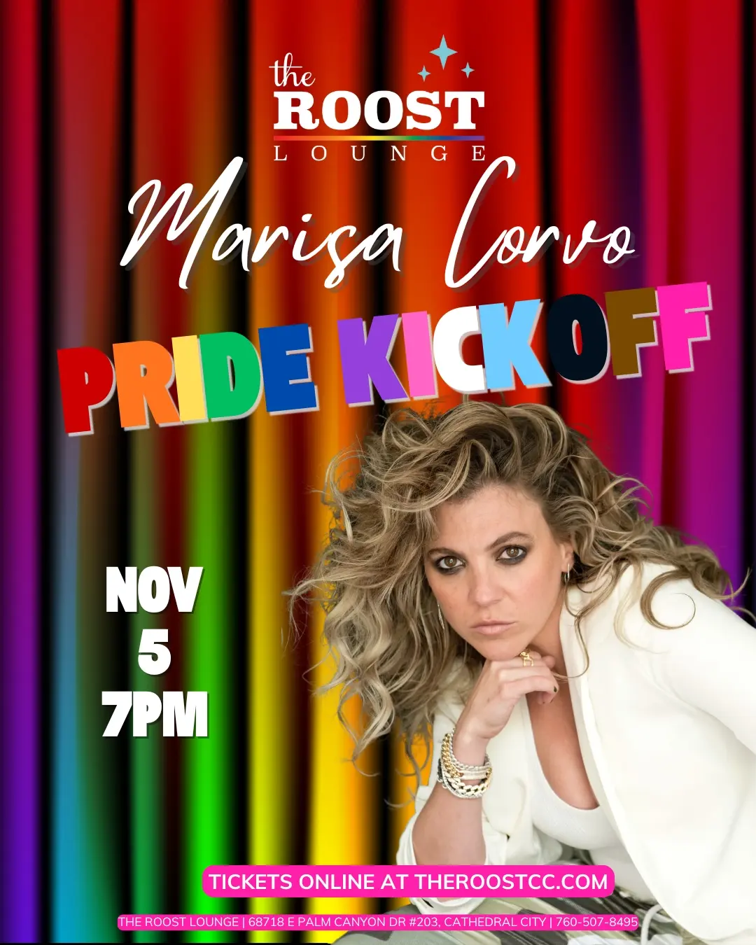 Marisa Corvo was raised in a lively Italian family and was inspired to get into music by her trumpet-playing dad. Her journey began as a classical pianist and she played her first professional gig with an orchestra at Juilliard when she was in the first grade. She performed at Carnegie Hall at 9 and began singing soon after. She landed a publishing deal at 19, but eventually got burnt out with music. At 21, Marisa came out as a lesbian and spent the next few years working various jobs. She later graduated from college and got back into music. Fast forward to 2012 when she made it to “American Idol” Season 11 and in 2020 she was part of “The Voice” Season 19 after a strong performance of Pink’s “Perfect” for her blind audition, turned 3 judges chairs and joined team Kelly. Even though she didn’t win, both shows put her on the map in the music industry. She brings a night of COUNTRY MUSIC to the Roost Stage.
