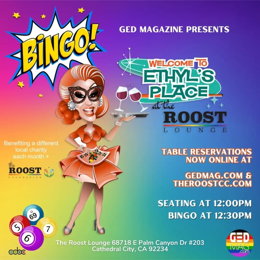 Join in the fun for ETHYL'S PLACE CHARITY BINGO at The Roost Lounge benefitting a different local charity each month + THE ROOST FOUNDATION SCHOLARSHIP FUND.