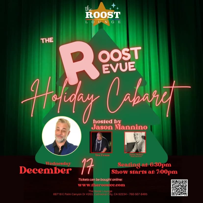 Join us for Debby Holiday's Cabaret Food Drive with live piano. Let's fill up the Cathedral City Senior Center van from 4 till 8pm! Stop by The Roost and drop of a bag to fill the van or bring and bag with you and enjoy the show.